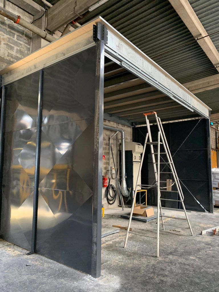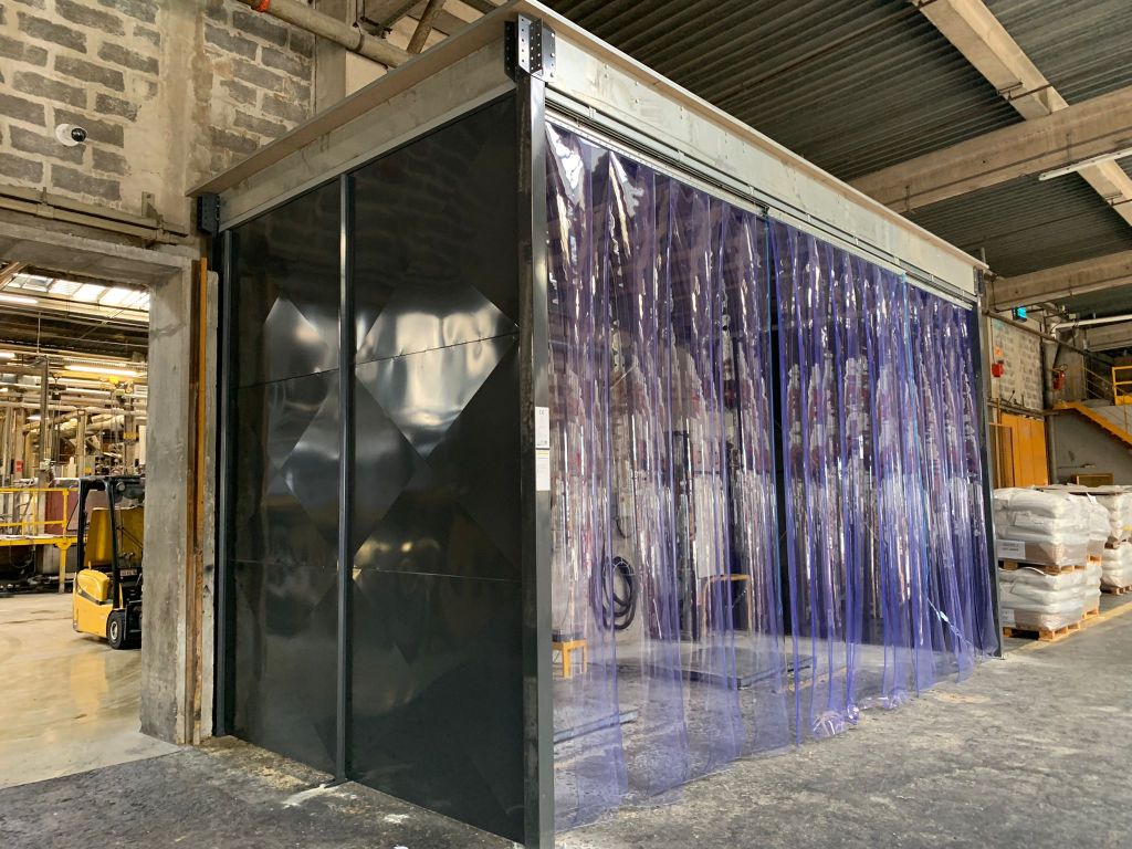 Porte à lanière qui forme un local affecté au contrôle qualité en plein cœur de la production