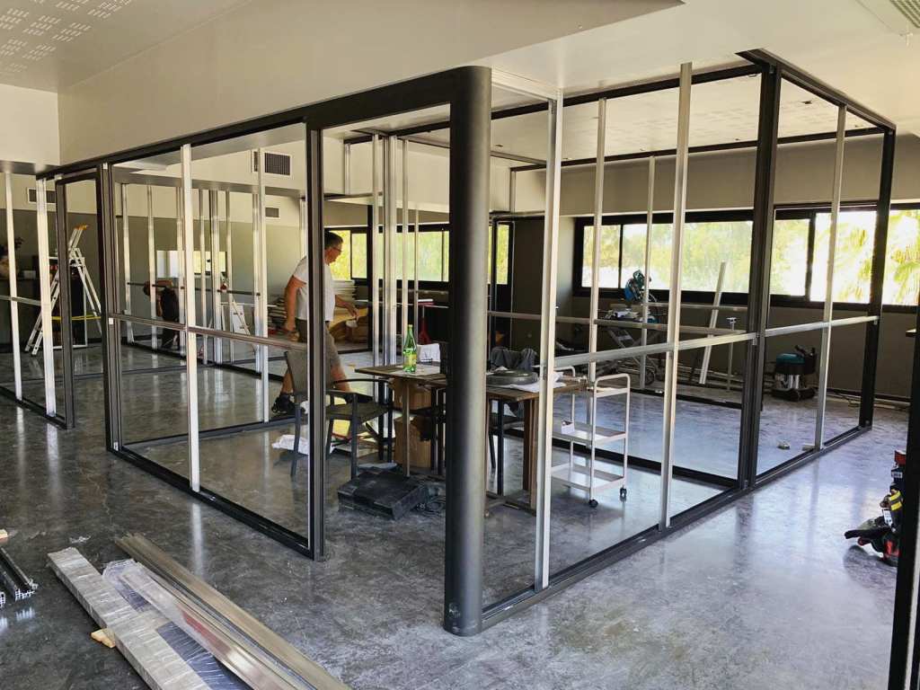 Aménagement de bureaux pour Century 21. Thierry, Arnaud, Marc et Alix : on ne change pas une équipe qui gagne ! Du sol au plafond, l’ensemble des collaborateurs de cette agence découvriront prochainement leur nouveau local. Un cadre de travail idyllique à seulement quelques pas de la mer : quelle chance ! Encore quelques efforts et tout sera prêt pour les recevoir. Un grand merci à nos équipes qui travaillent dur en cette période de grande chaleur. De là à aller se baigner en fin de journée .. il n’y a qu’un pas !